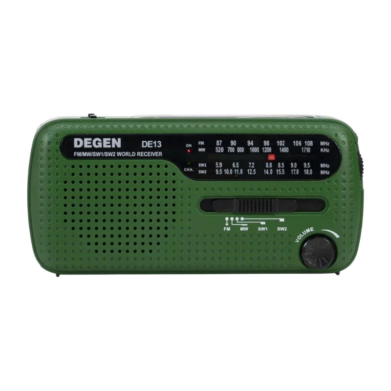 Met de Degen DE13DSP kun tevens je mobiele telefoon en andere apparaten opladen en beschikt de radio over een zaklamp, sirene en een rood knipperende ledlamp.