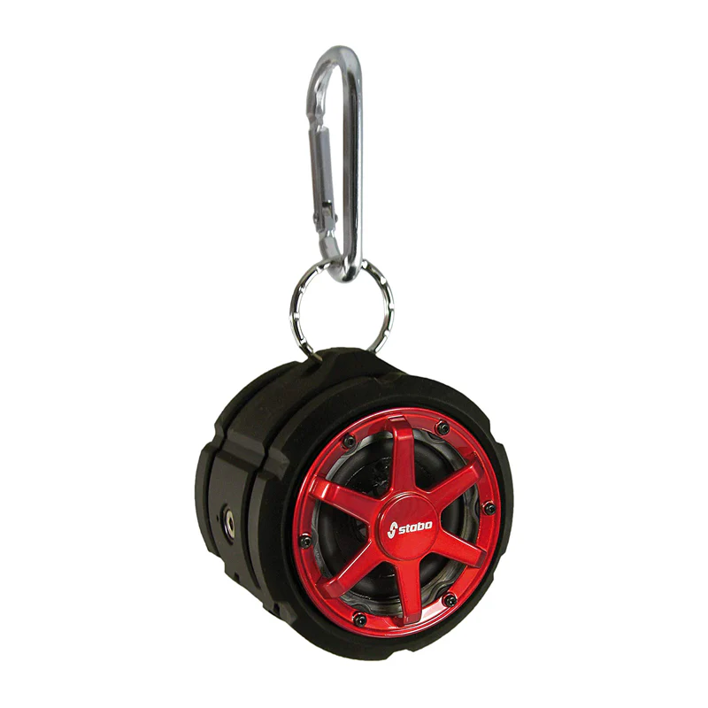 Maak kennis met de Stabo Bluetooth speaker: robuust, waterdicht en vormgegeven als een sportieve autoband met rode sportvelg. Of je nu aan het wandelen bent, op de camping zit of gewoon thuis relaxt – met deze speaker geniet je overal van krachtig geluid en diepe bassen.